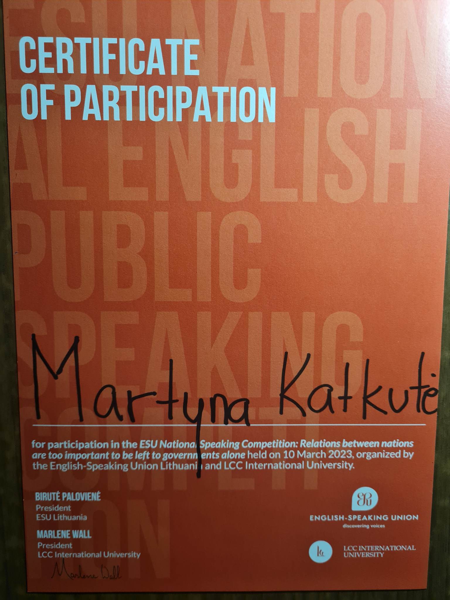 nacionalinis viešojo kalbėjimo anglų kalba konkursas, kurio bendra tema „Relations between