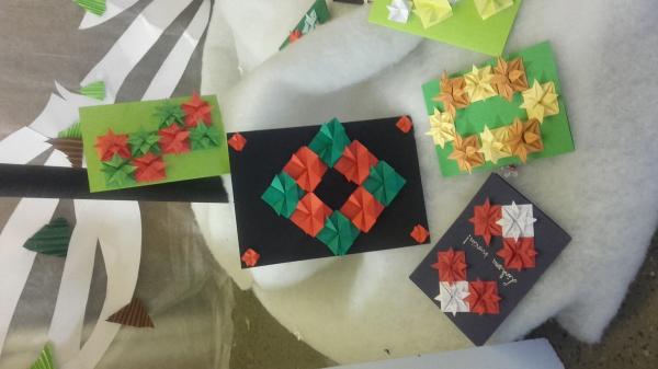Visą lapkričio mėnesį gimnazistai savo matematinį kūrybiškumą taikė darydami origami darbelius. Nuostabūs kūrinėliai buvo išsiųsti į Belgijos, Bulgarijos, Italijos, Rumunijos ir Turkijos mokyklas. Visose mokyklose partnerėse buvo eksponuojamos analogiškos „Kalėdinio matematinio origami” parodėlės. Gimnazijoje darbelius išdėliojome gruodžio 17 dieną.