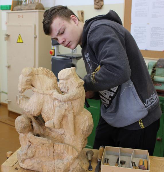II vieta. Paulius Mikšta, IIIc klasė, Plungės ,,Saulės” gimnazija, medžio skulptūros (15-19 metų amžiaus kategorijoje).