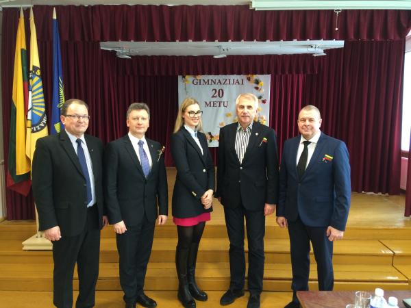 Vasario 14 dieną gimnazijoje vyko susitikimas su teisininku, diplomatu, visuomenės bei politiniu veikėju, buvusiu LR užsienio reikalų ministru, „Misija Sibiras” iniciatoriumi, 2010–2013 m. Europos Sąjungos specialiuoju įgaliotiniu ir Bendrijos misijos vadovu Afganistane, 2013 – 2017 m. Europos Sąjungos atstovybės Rusijos Federacijoje vadovu, Kauno technologijos universiteto Europos instituto direktoriumi Vygaudu Ušacku.