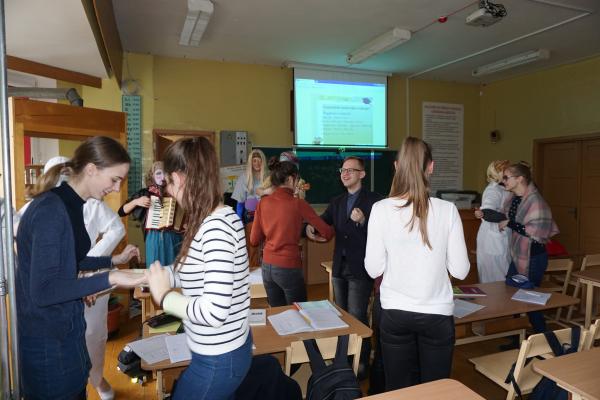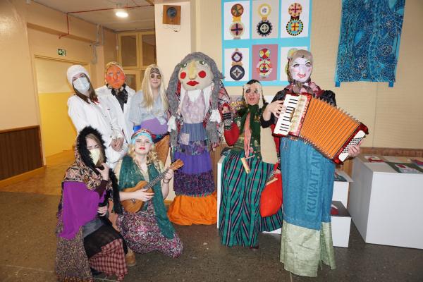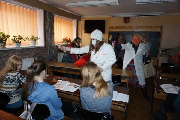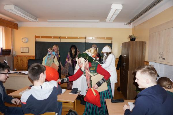 Teatro grupės nariai ir jų mokytoja Dainora Gedvilienė šiemet žiemą nusprendė išgąsdinti persirengę įvairiais Užgavėnių personažais. Vasario 28 dieną mokykloje prasidėjo linksmybės: gausus būrys persirengėlių šoko, dainavo, triukšmavo, sakė oracijas, skelbė Užgavėnių papročius, būrė, linkėjo gerų ir derlingų metų. Visa gimnazija prisipildė džiugios nuotaikos. Taigi galime sakyti, kad iš visų pastangų varėme žiemą, tad tikimės tuojau sulaukti pirmųjų pavasario pranašų…